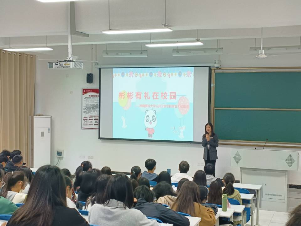 为了让新生养成良好的文明礼仪习惯,公共卫生学院11月13日下午在学海楼203举办新生校园文明礼仪培训。本次培训由公共卫生学院学生科科长彭丽冰主讲。全体22级预防和卫检新生参加培训。