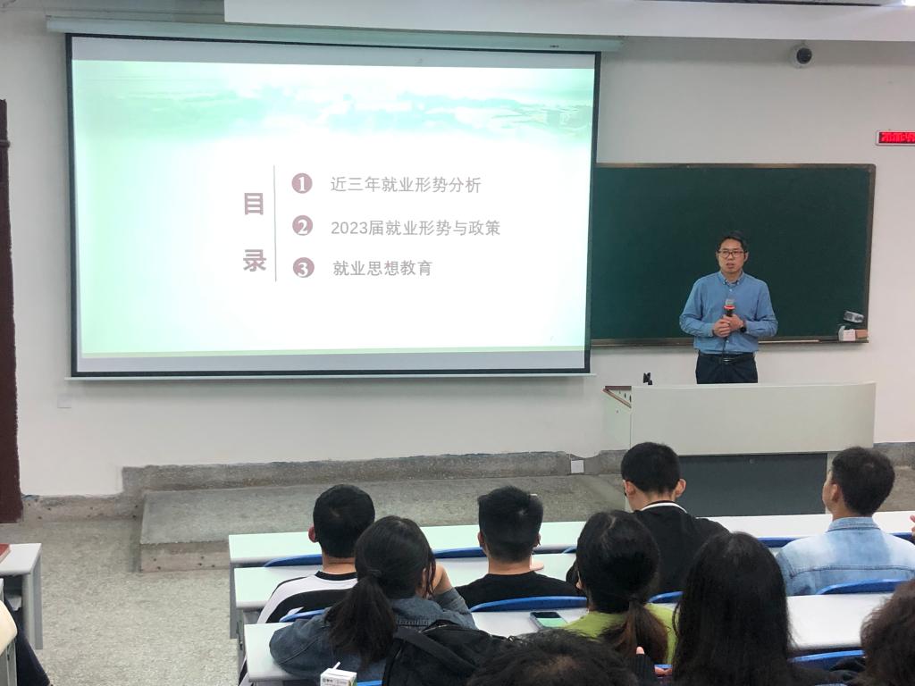 为进一步贯彻落实党的二十大精神和党中央国务院“稳就业”“保就业”决策部署,根据学校《关于开展2023届毕业生春季促就来攻坚行动的通知》精神,3月11日晚,医学检验系在忠山校区第5阶梯教室举办2023届毕业生就业形势与政策专题讲座。讲座由学生科科长李尚学主讲,医学检验系学生科辅导员刘泸、教学秘书周家红及医学检验技术专业2023届全体毕业生参加,讲座采用线上线下相结合方式进行。