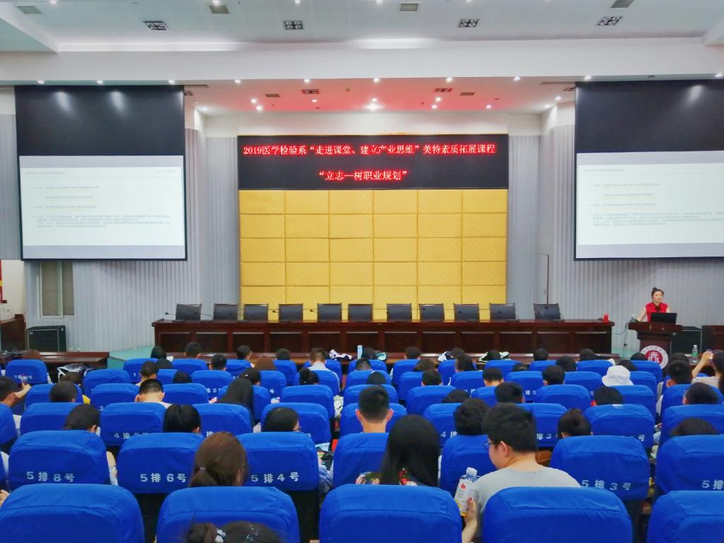 4月27日下午,医学检验系在城北校区第二学术报告厅开展了美特素质拓展系列课程之“立志——树职业规划”讲座。四川美特生物技术有限公司孟柯杉和倪旻出席此次课程,医学检验系16级17级18级学生共163人参与其中。